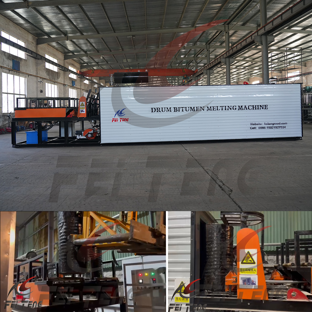 我公司研制生产的ZYDST型沥青脱桶装置以高温导热油为载体,以柴油燃烧器为热源,通过加热盘管和高温烟道对桶装沥青进行加热、脱桶、融化。无需外置导热油锅炉,出色地将导热油锅炉与脱桶设备结合为一体,该装置可保证沥青加热质量,具有热利用率高、沥青脱桶速度快、自动化程度高、减少污染等特点。